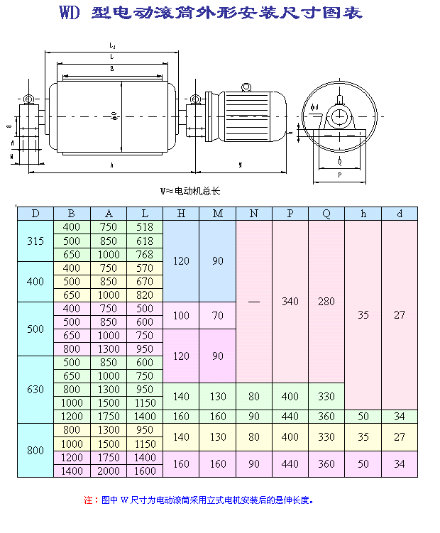 (1).因目前外裝式電動(dòng)滾筒尚未制定相關(guān)行業(yè)標(biāo)準(zhǔn),本廠將該型號(hào)電動(dòng)滾筒首位代號(hào)用W(“外裝”的首位漢語(yǔ)拼音)表示。外裝式電動(dòng)滾筒外置電機(jī)可分為立式電機(jī)和臥式電機(jī),用戶(hù)訂購(gòu)時(shí)請(qǐng)加以說(shuō)明;